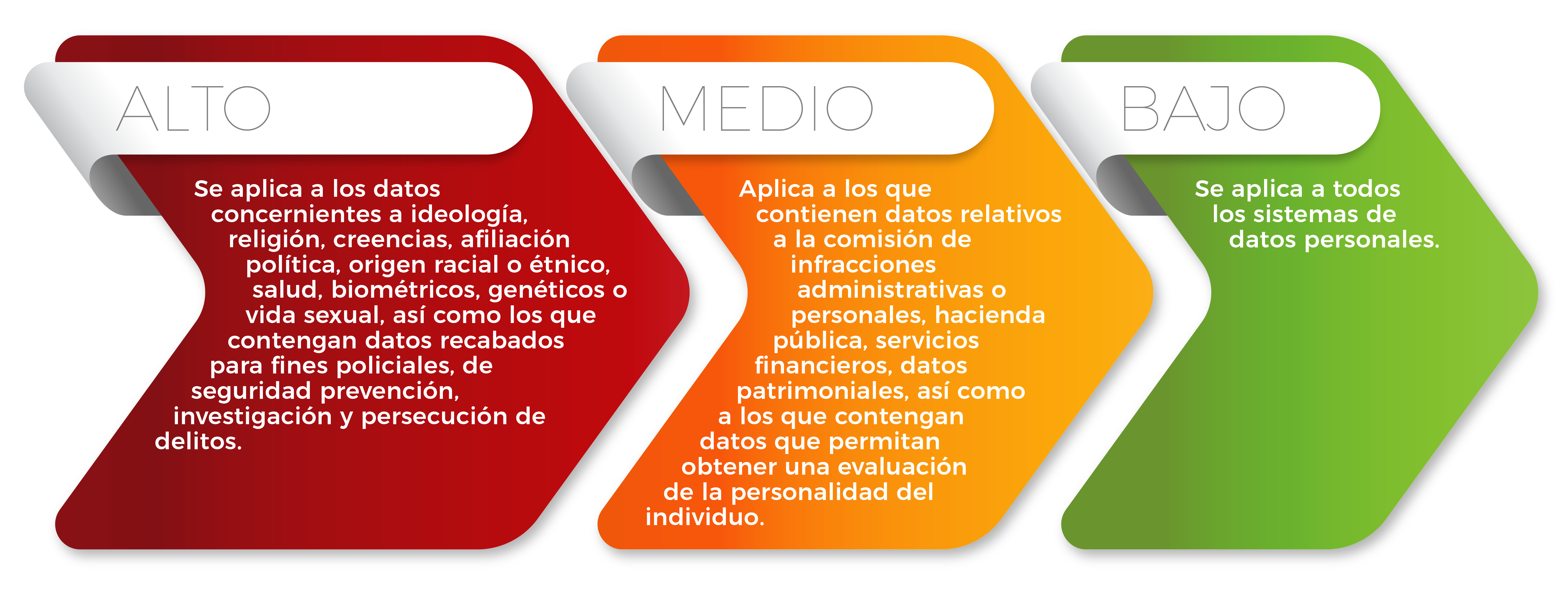 Las medidas de seguridad deberán ser acordes a diversos factores: la tecnología en que se encuentra la base de datos, el tipo de datos personales en posesión y los riesgos de exposición por agentes externos personales o físicos [12].